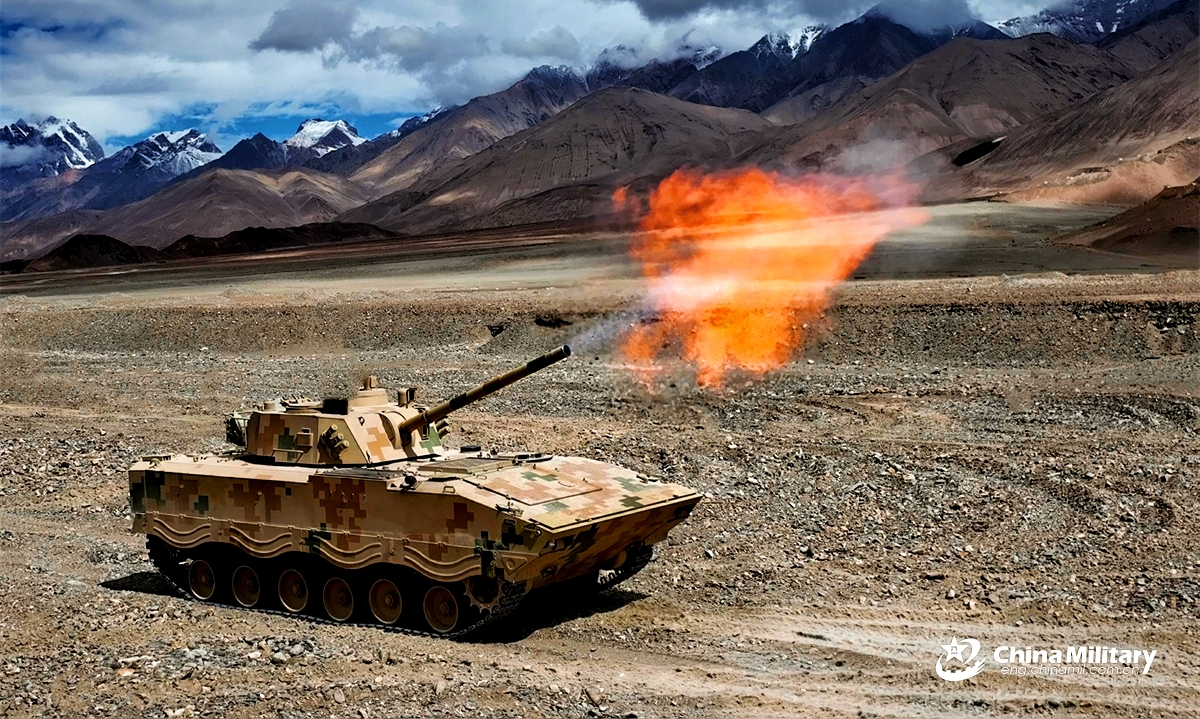 A PLZ-10 120mm self-propelled mortar-howitzer system attached to an artillery detachment of the Chinese PLA Army opens fire at the target during a live-fire shooting training exercise on August 4, 2025. (eng.chinamil.com.cn/Photo by Meideti)