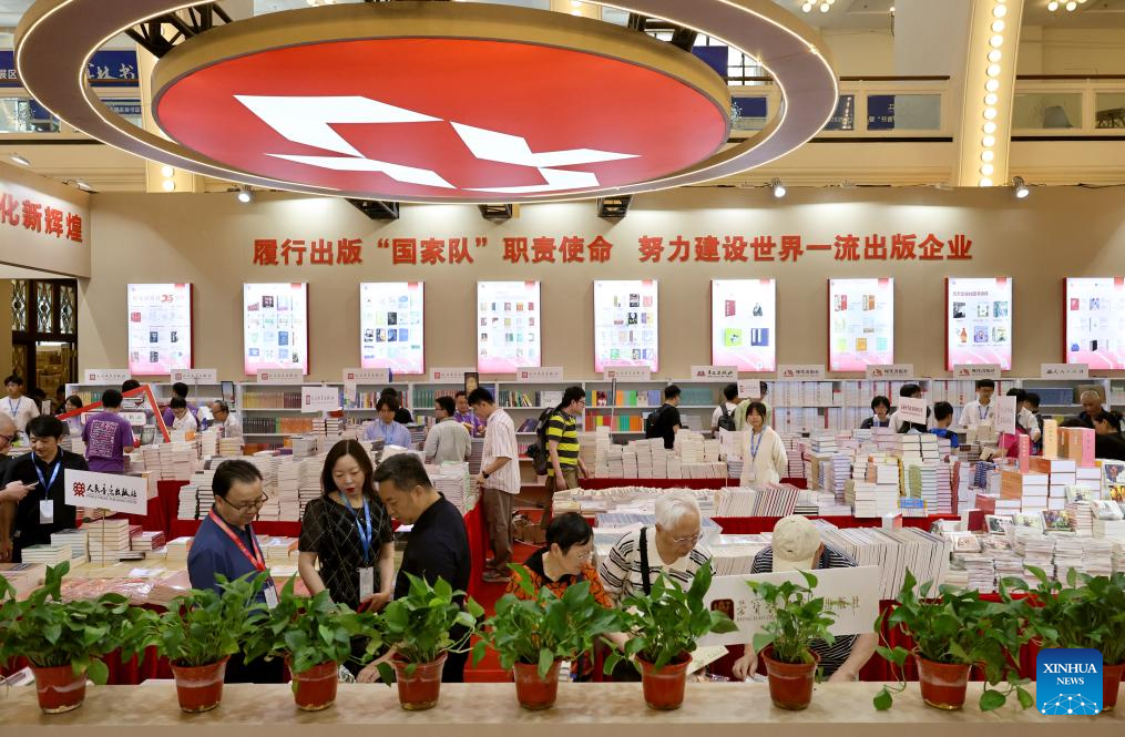 People visit the 2025 Shanghai Book Fair in Shanghai, east China, Aug. 13, 2025. The book fair kicked off on Wednesday and will last until Aug. 19. (Xinhua/Fang Zhe)