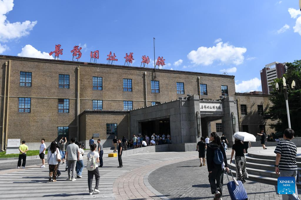 People visit a film museum built on the former site of Changchun Film Studio in Changchun, northeast China's Jilin Province, Aug. 7, 2025. Since the start of the summer vacation, the film museum has attracted visitors with film resources, with peak daily visitor numbers exceeding 8,000. (Xinhua/Yan Linyun)