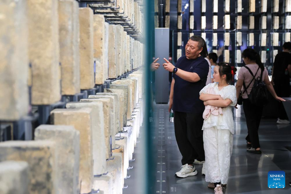 A guardian and his child visit a museum on city walls in Nanjing, east China's Jiangsu Province, Aug. 16, 2025. (Photo by Su Yang/Xinhua)