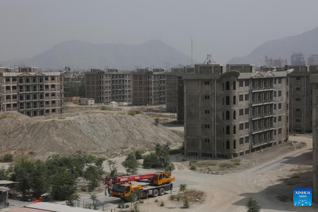 This photo taken on Aug. 17, 2025 shows a Chinese-aided housing project under construction in Kabul, Afghanistan. Across Afghanistan, stories of returnees and students alike paint a picture of resilience and renewal -- a process strengthened by China's timely humanitarian aid and far-reaching educational cooperation. (Photo by Saifurahman Safi/Xinhua)