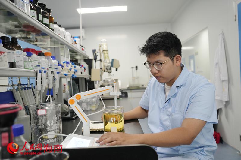 A staff member works at a lab of Hainan Huayan Collagen Technology Co., Ltd. (People's Daily Online/Fu Wuping)