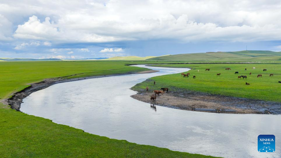 A drone photo taken on Aug. 19, 2025 shows the scenery along the Mergel Gol River in Hulun Buir, north China's Inner Mongolia Autonomous Region. (Xinhua/Ma Jinrui)
