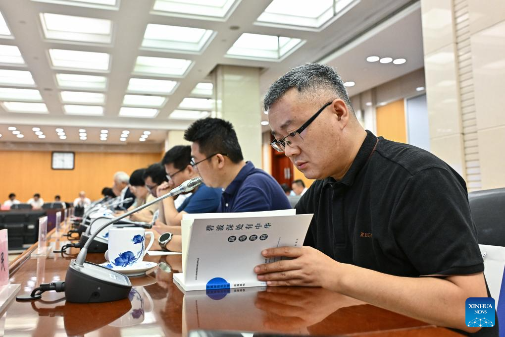 Participants read the report titled "The Truths about the South China Sea" at a seminar in Beijing, capital of China, Aug. 21, 2025. (Xinhua/Li Xin)