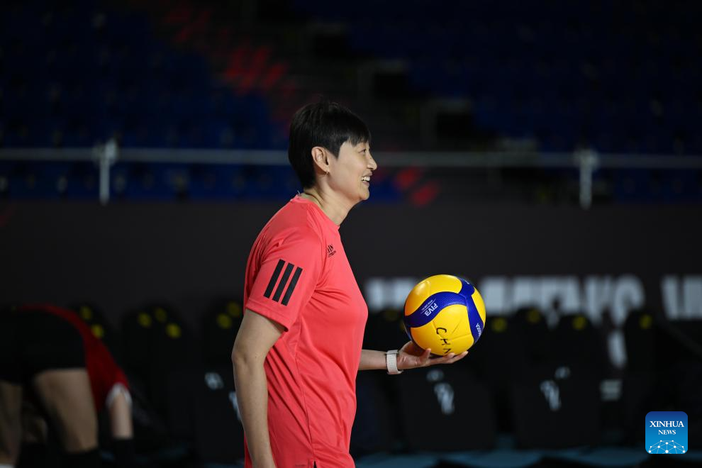Yang Hao, a coach member of team China, takes part in a training session ahead of the FIVB Women's Volleyball World Championship in Chiang Mai, Thailand, Aug. 21, 2025. (Xinhua/Hou Zhaokang)