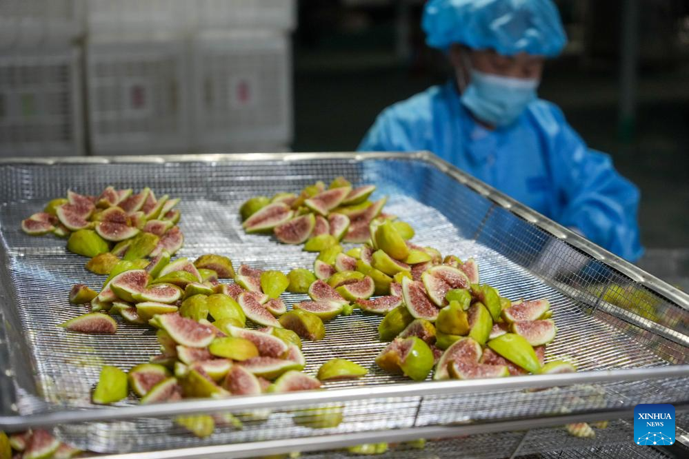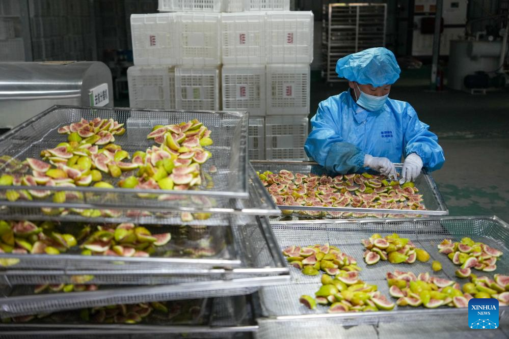 A staff member of a food processing enterprise manufactures dried figs in Xintai City of east China's Shandong Province, Aug. 24, 2025. Figs in Xintai City have entered harvest season recently. (Xinhua/Xu Suhui)