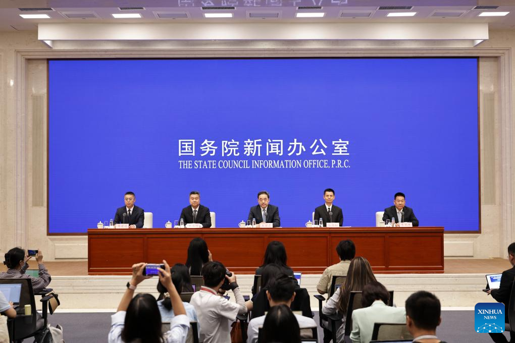 Wang Hongzhi, a member of the Communist Party of China Leadership Group of the National Development and Reform Commission and head of the National Energy Administration, attends a press conference held by the State Council Information Office (SCIO) on achievements in high-quality energy development during the 14th Five-Year Plan period (2021-2025) in Beijing, capital of China, Aug. 26, 2025. (Xinhua/Zhang Yuwei)