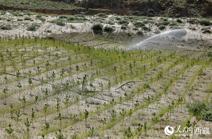 A once-barren mountainous area plagued by sand and dust is transforming into green terrain in Gonggar county, southwest China's Xizang Autonomous Region, thanks to a massive tree-planting effort.