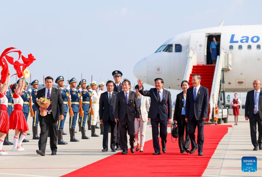 General Secretary of the Lao People's Revolutionary Party Central Committee and Lao President Thongloun Sisoulith arrives for the Shanghai Cooperation Organization (SCO) Summit 2025 in Tianjin, north China, Aug. 31, 2025. (Xinhua/Zhao Zishuo)