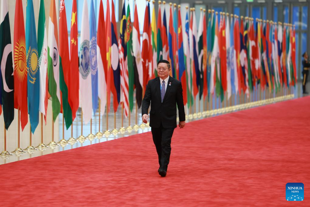 Kao Kim Hourn, secretary-general of the Association of Southeast Asian Nations (ASEAN), arrives at the Meijiang Convention and Exhibition Center for a welcoming banquet in Tianjin, north China, Aug. 31, 2025. Chinese President Xi Jinping and his wife, Peng Liyuan, on Sunday hosted a banquet in China's port city of Tianjin to welcome international guests who are here to attend the Shanghai Cooperation Organization (SCO) Summit 2025. (Xinhua/Ding Haitao)