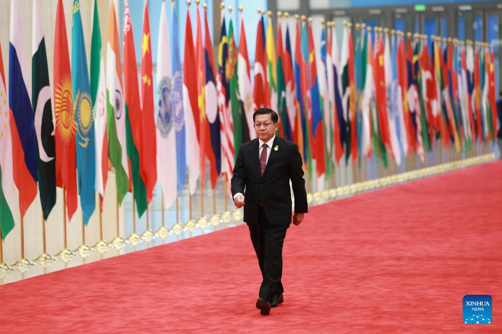 Cambodian Prime Minister Hun Manet arrives at the Meijiang Convention and Exhibition Center for a welcoming banquet in Tianjin, north China, Aug. 31, 2025. Chinese President Xi Jinping and his wife, Peng Liyuan, on Sunday hosted a banquet in China's port city of Tianjin to welcome international guests who are here to attend the Shanghai Cooperation Organization (SCO) Summit 2025. (Xinhua/Ding Haitao)