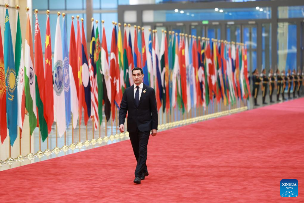 Turkmen President Serdar Berdimuhamedov arrives at the Meijiang Convention and Exhibition Center for a welcoming banquet in Tianjin, north China, Aug. 31, 2025. Chinese President Xi Jinping and his wife, Peng Liyuan, on Sunday hosted a banquet in China's port city of Tianjin to welcome international guests who are here to attend the Shanghai Cooperation Organization (SCO) Summit 2025. (Xinhua/Ding Haitao)