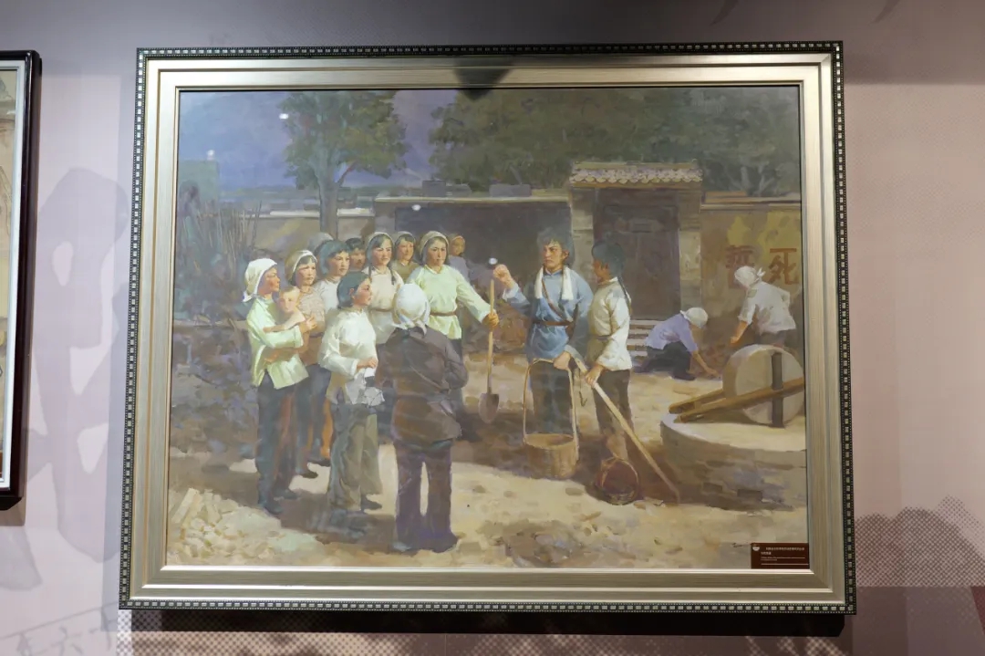 A painting on display at the Ranzhuang Tunnel Warfare Memorial Hall shows Li Guifen, head of a women's association for the fight against Japanese invaders, rallying young women to join an effort to dig tunnels. (People's Daily Online/E Zhichao)