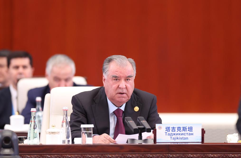 Tajik President Emomali Rahmon attends the "Shanghai Cooperation Organization (SCO) Plus" Meeting in Tianjin, north China, Sept. 1, 2025. The Shanghai Cooperation Organization (SCO) convened the "SCO Plus" Meeting on Monday afternoon in north China's port city of Tianjin. (Xinhua/Huang Jingwen)