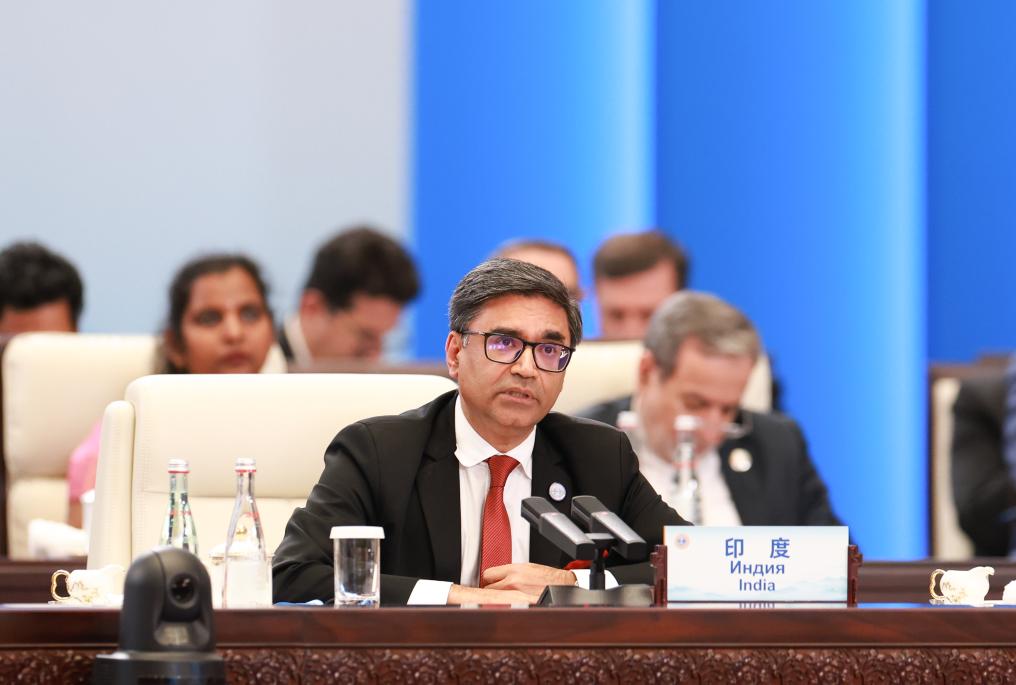 A representative of India attends the "Shanghai Cooperation Organization (SCO) Plus" Meeting in Tianjin, north China, Sept. 1, 2025. The Shanghai Cooperation Organization (SCO) convened the "SCO Plus" Meeting on Monday afternoon in north China's port city of Tianjin. (Xinhua/Ding Haitao)