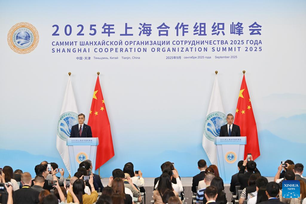 TIANJIN, Sept. 1 (Xinhua) -- Chinese Foreign Minister Wang Yi on Monday highlighted a series of outcomes achieved at the Shanghai Cooperation Organization (SCO) Summit 2025 held in Tianjin, China.