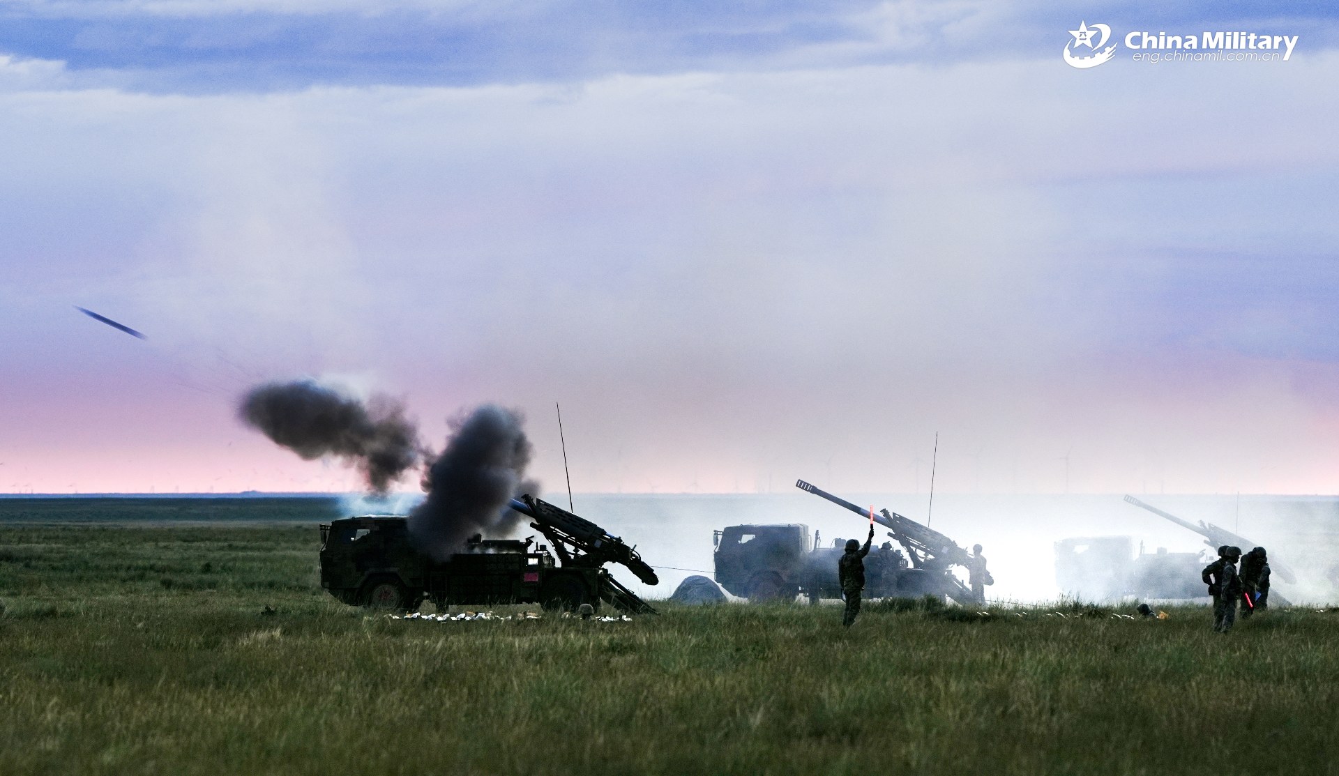 Wheeled self-propelled howitzers attached to a brigade under the Chinese PLA 78th Group Army fire at targets during a live-fire shooting training exercise on August 22, 2025. (eng.chinamil.com.cn/Photo by Ni Guojian)