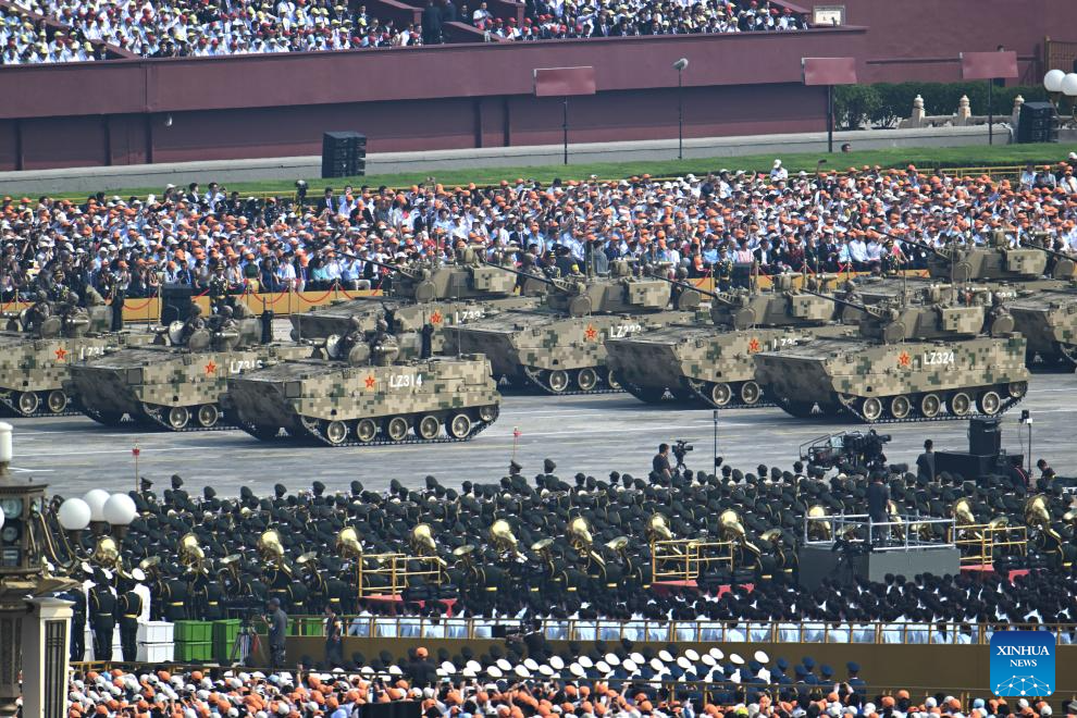 The amphibious assault formation attends a military parade in Beijing, capital of China, Sept. 3, 2025. China on Wednesday held a grand gathering to commemorate the 80th anniversary of the victory in the Chinese People's War of Resistance against Japanese Aggression and the World Anti-Fascist War. (Xinhua/Pan Yulong)