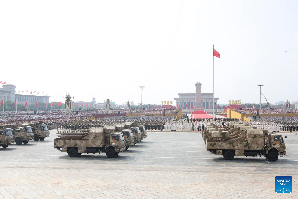 The electronic countermeasures formation attends a military parade in Beijing, capital of China, Sept. 3, 2025. China on Wednesday held a grand gathering to commemorate the 80th anniversary of the victory in the Chinese People's War of Resistance against Japanese Aggression and the World Anti-Fascist War. (Xinhua/Chen Bin)