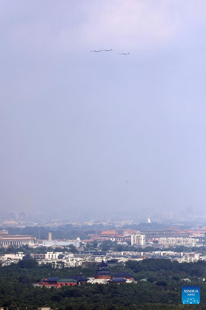 The bomber echelon attends a military parade in Beijing, capital of China, Sept. 3, 2025. China on Wednesday held a grand gathering to commemorate the 80th anniversary of the victory in the Chinese People's War of Resistance against Japanese Aggression and the World Anti-Fascist War. (Xinhua/Lyu Shuai)