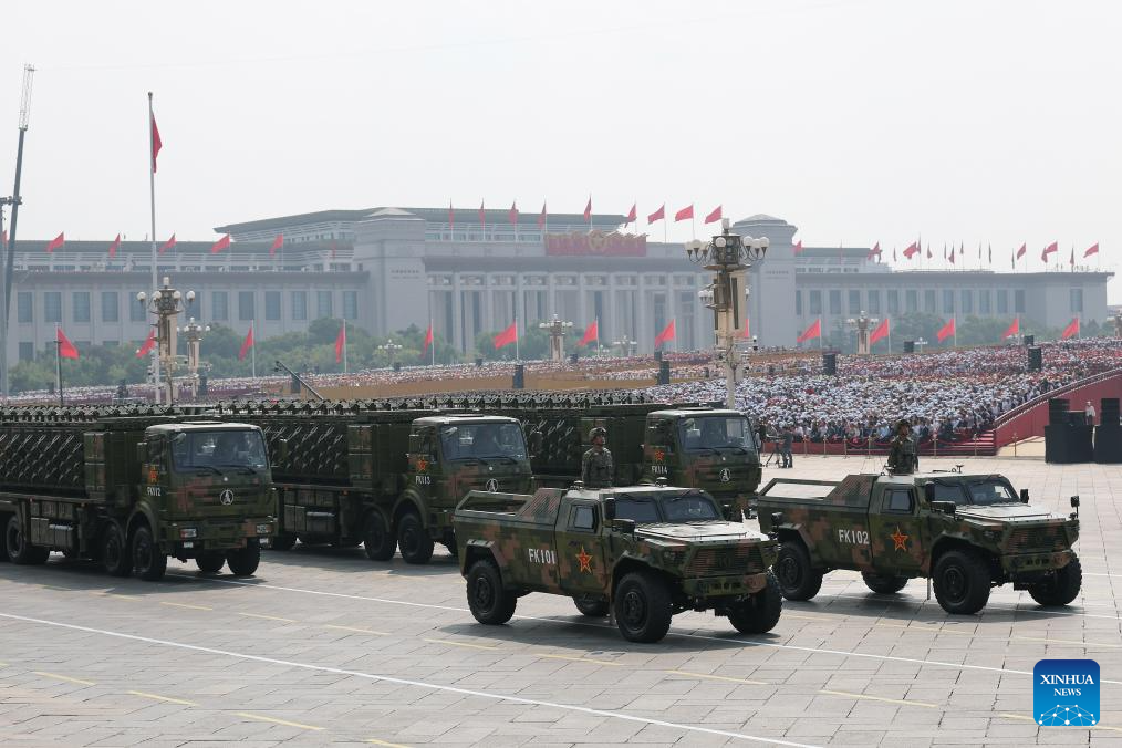 The long-range artillery formation attends a military parade in Beijing, capital of China, Sept. 3, 2025. China on Wednesday held a grand gathering to commemorate the 80th anniversary of the victory in the Chinese People's War of Resistance against Japanese Aggression and the World Anti-Fascist War. (Xinhua/Xiong Qi)