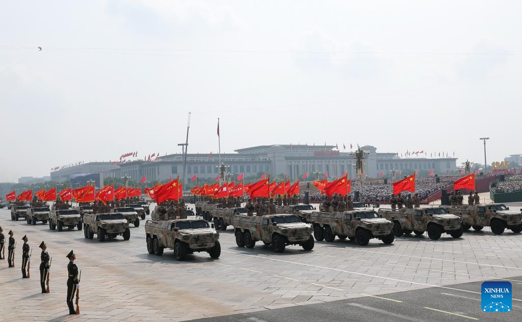The armament support formation attends a military parade in Beijing, capital of China, Sept. 3, 2025. China on Wednesday held a grand gathering to commemorate the 80th anniversary of the victory in the Chinese People's War of Resistance against Japanese Aggression and the World Anti-Fascist War. (Xinhua/Zhang Long)
