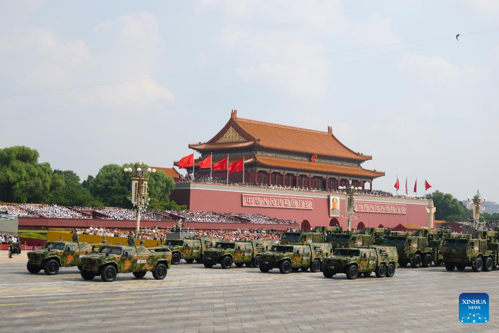 The armament support formation attends a military parade in Beijing, capital of China, Sept. 3, 2025. China on Wednesday held a grand gathering to commemorate the 80th anniversary of the victory in the Chinese People's War of Resistance against Japanese Aggression and the World Anti-Fascist War. (Xinhua/Huang Wei)
