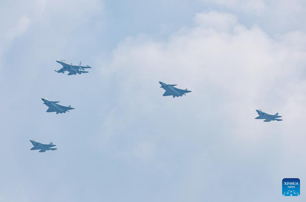 The fighter jets echelon attends a military parade in Beijing, capital of China, Sept. 3, 2025. China on Wednesday held a grand gathering to commemorate the 80th anniversary of the victory in the Chinese People's War of Resistance against Japanese Aggression and the World Anti-Fascist War. (Xinhua/Sun Fanyue)