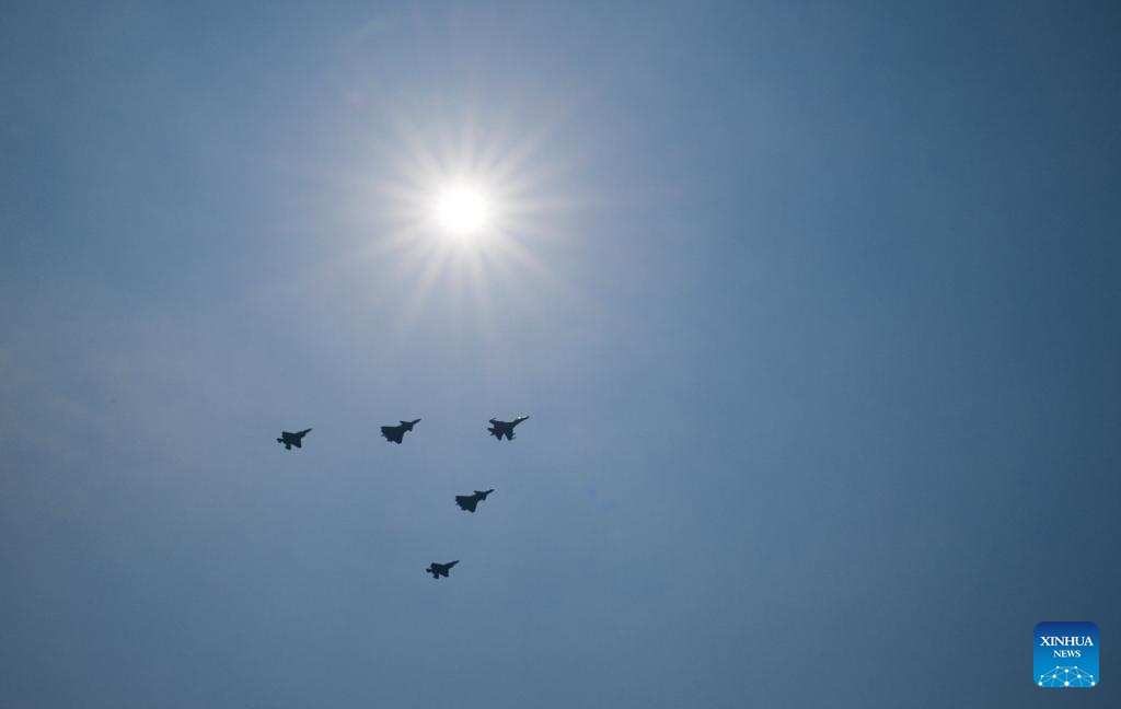 The fighter jets echelon attends a military parade in Beijing, capital of China, Sept. 3, 2025. China on Wednesday held a grand gathering to commemorate the 80th anniversary of the victory in the Chinese People's War of Resistance against Japanese Aggression and the World Anti-Fascist War. (Xinhua/Lian Zhen)