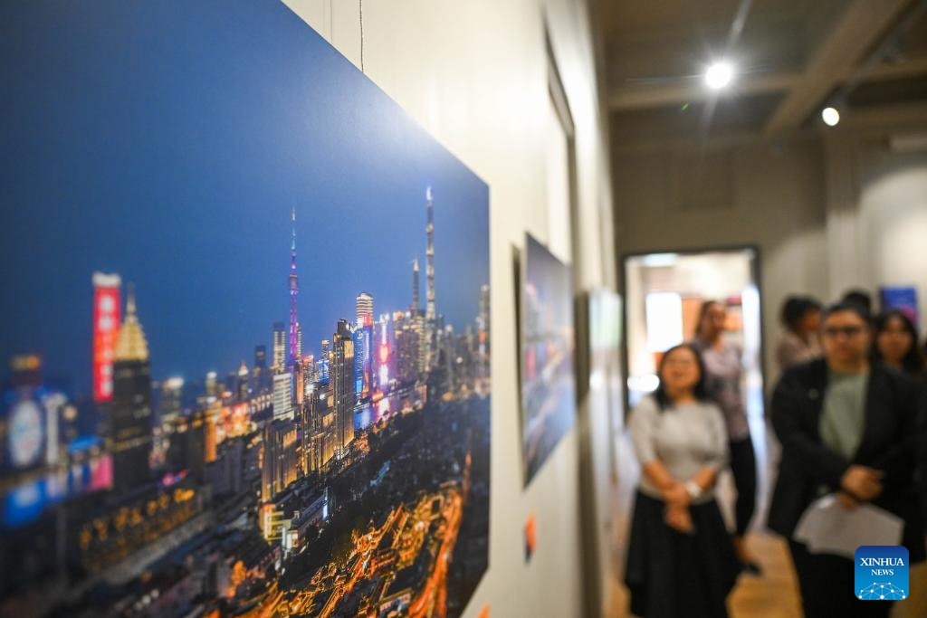 People visit the "Amazing Shanghai" City Branding Campaign and Shanghai-Istanbul Visual Arts Exhibition in Istanbul, Trkiye, Sept. 5, 2025. The "Amazing Shanghai" City Branding Campaign and Shanghai-Istanbul Visual Arts Exhibition was held in Istanbul on Friday. The event brought together nearly a hundred works of photography, illustrations and videos from artists of both China and Trkiye, showcasing urban landscapes and cultural essence of the two port cities. (Xinhua/Liu Lei)