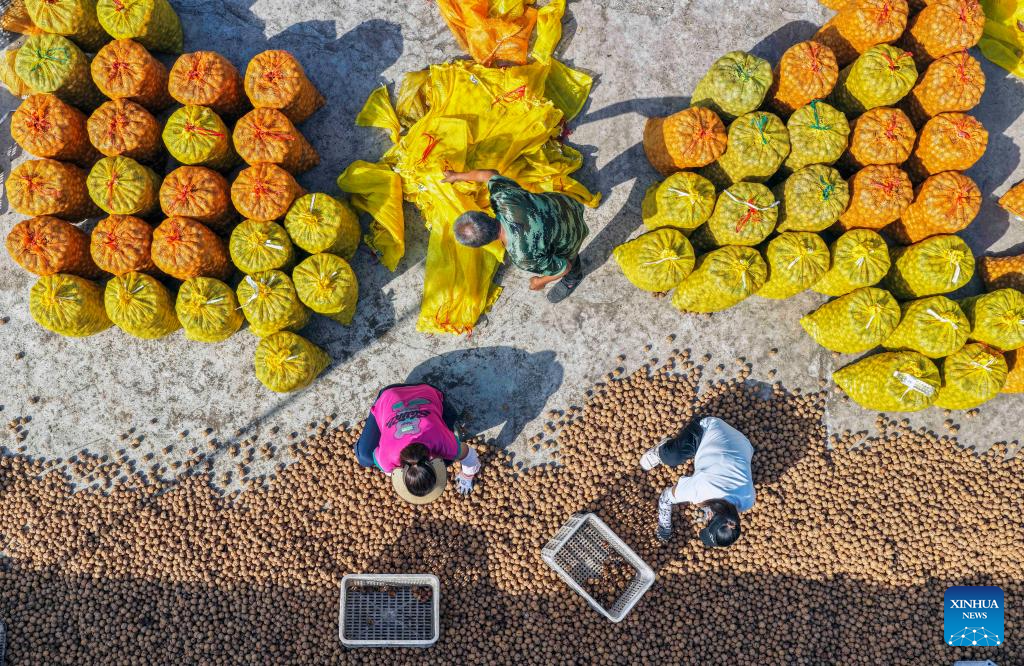 A villager sorts harvested chestnuts in Tancheng County of Linyi City, east China's Shandong Province, Sept. 11, 2025. (Photo by Zhang Chunlei/Xinhua)