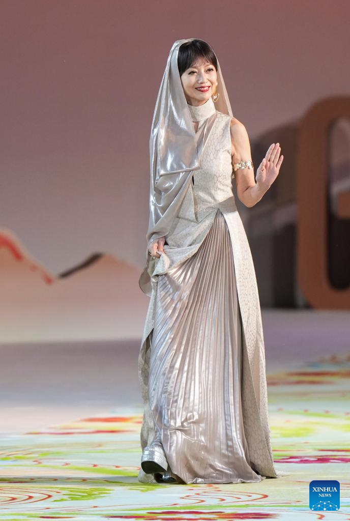 Actress Angie Chiu arrives for the second Golden Panda Awards ceremony in Chengdu, southwest China's Sichuan Province, Sept. 13, 2025. The second Golden Panda Awards were presented on Saturday in Chengdu, southwest China's Sichuan province, which is the home of the giant panda. The international cultural event honors achievements in the fields of film, TV, documentary and animation under 27 categories. (Xinhua/Jiang Hongjing)