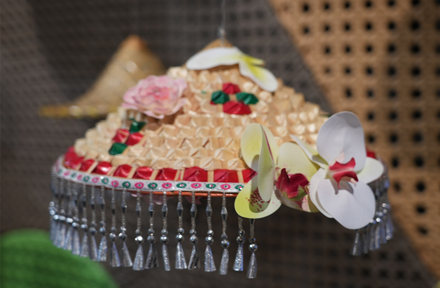 A woven bamboo hat is displayed at an intangible cultural heritage park in Huaihua, central China's Hunan Province. (Photo/Xu Jiayi)