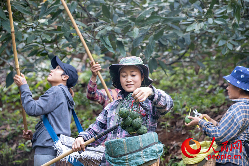 Villagers harvest avocados in Menglian Dai, Lahu, and Wa Autonomous County, Pu'er city, southwest China's Yunnan Province. (People's Daily Online/Hu Zunhui)