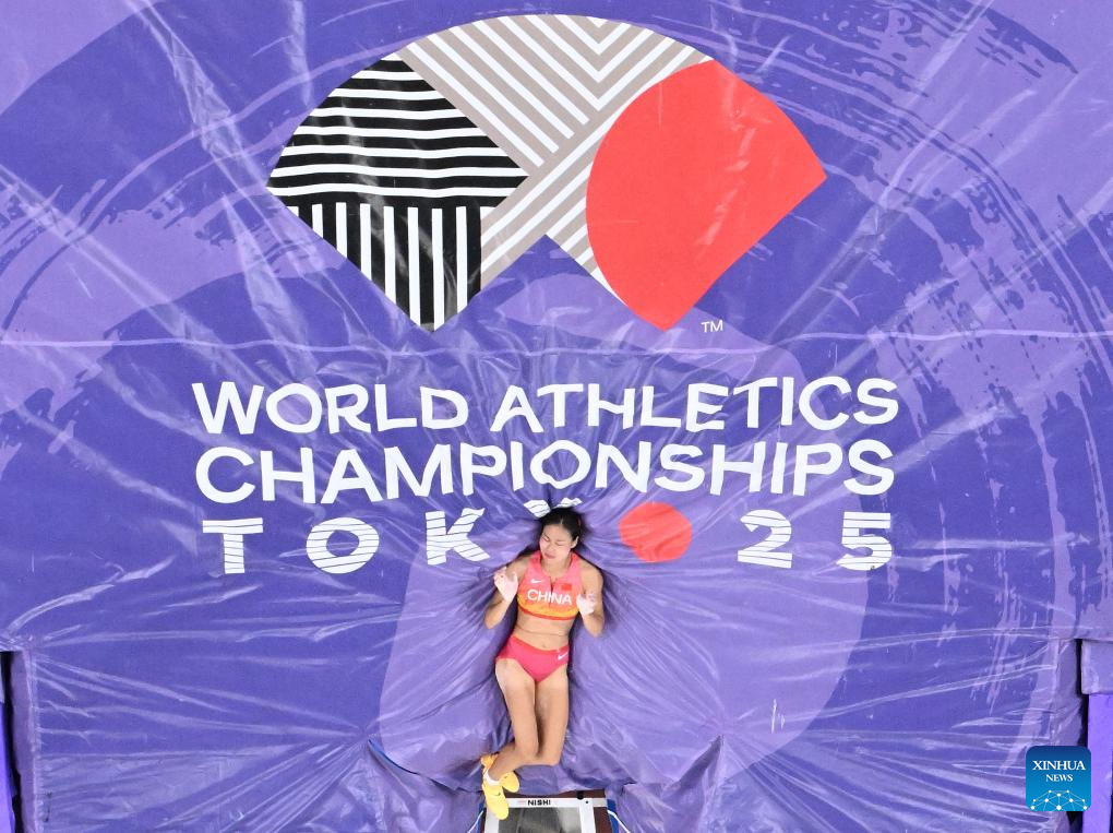 Niu Chunge of China competes during the women's pole vault final at the 2025 World Athletics Championships in Tokyo, Japan, Sept. 17, 2025. (Xinhua/Ju Huanzong)