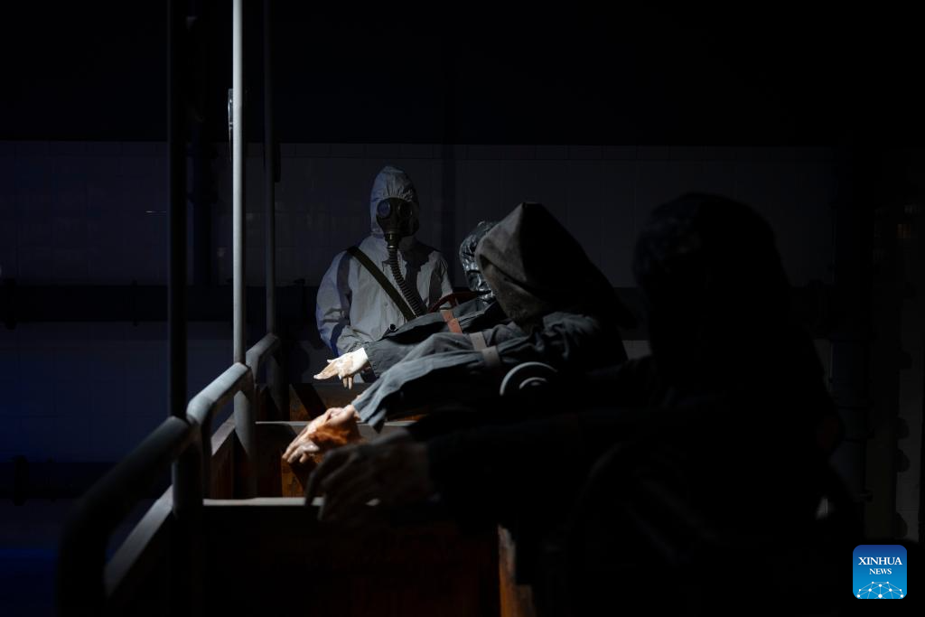 This photo shows a view at a special exhibition on the shooting process of Evil Unbound, a film about Unit 731, in Harbin, northeast China's Heilongjiang Province, Sept. 17, 2025.
