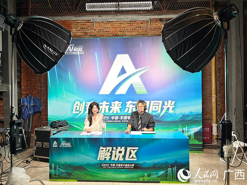 Commentators work during the 2025 China-ASEAN E-sports Competition in Nanning, south China's Guangxi Zhuang Autonomous Region. (People's Daily Online/Wei Huan)
