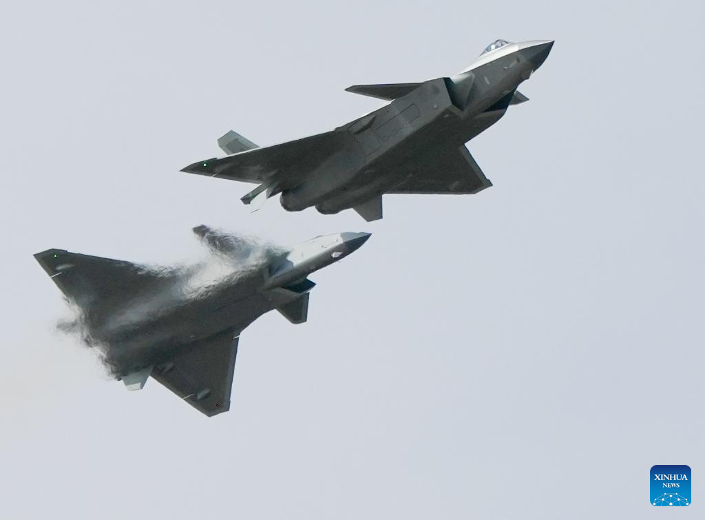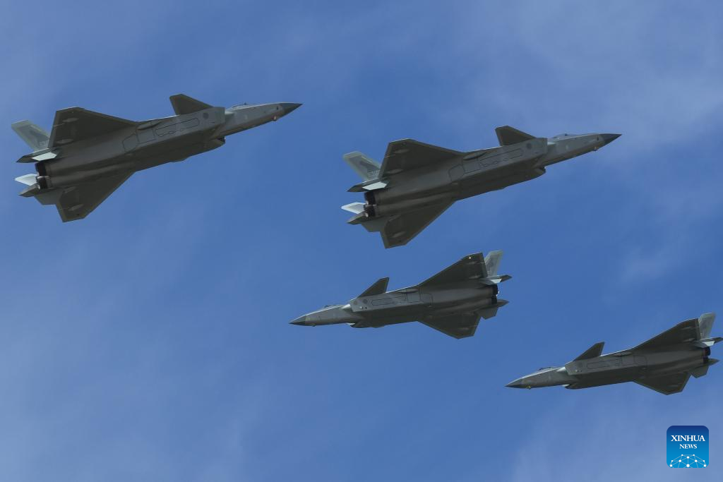 J-20 fighter jets are pictured during the 2025 aviation open-day activities of the Chinese People's Liberation Army Air Force and Changchun Air Show in Changchun, northeast China's Jilin Province, Sept. 19, 2025. The events kicked off here on Friday. (Xinhua/Yan Linyun)