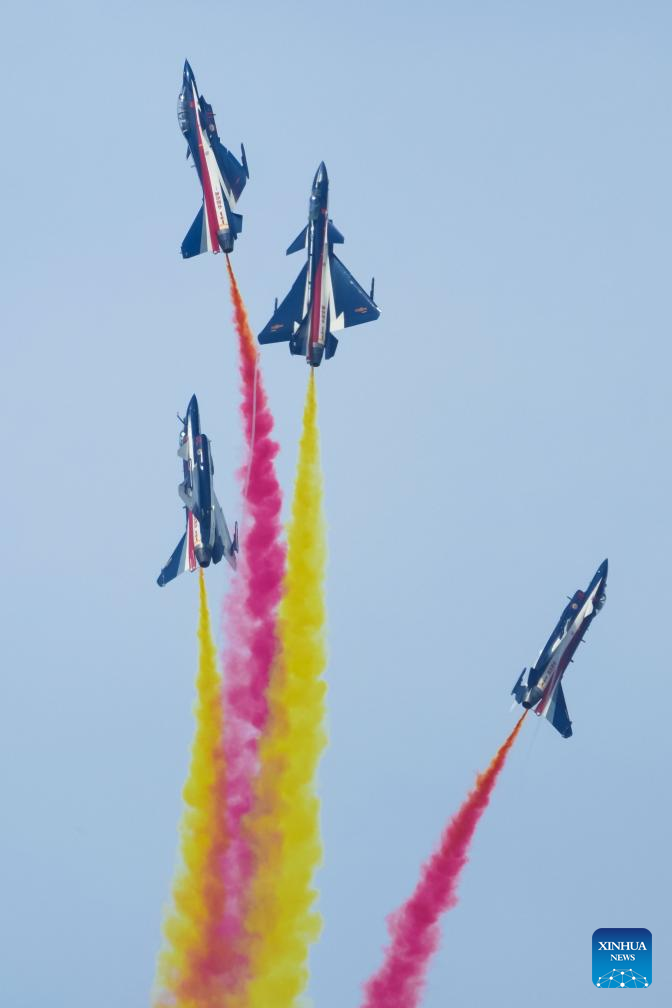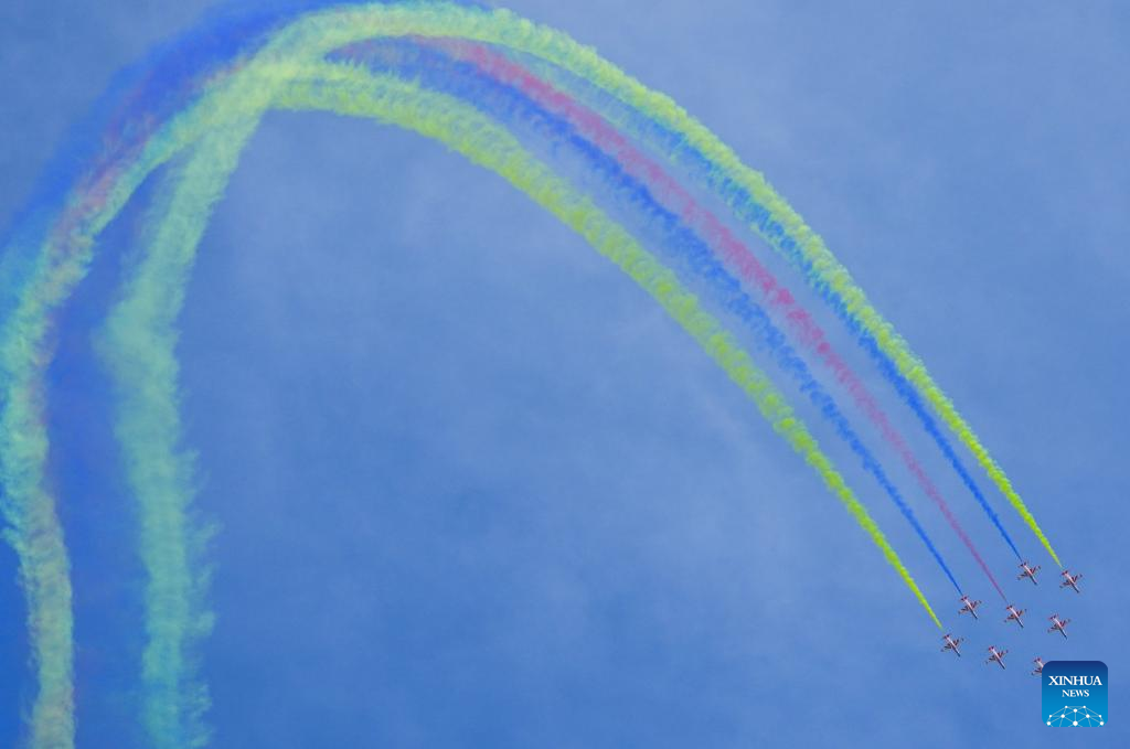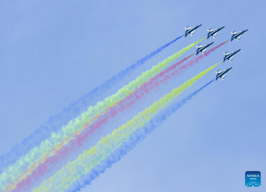 Aircraft of the Bayi Aerobatic Team of the Chinese People's Liberation Army Air Force perform during the 2025 aviation open-day activities of the Chinese People's Liberation Army Air Force and Changchun Air Show in Changchun, northeast China's Jilin Province, Sept. 19, 2025. The events kicked off here on Friday. (Xinhua/Tang Chengzhuo)