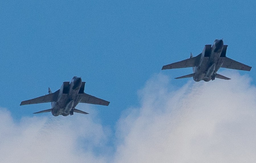 MiG-31 fighters fly in formation during the military parade marking the 75th anniversary of the victory in the Great Patriotic War on Red Square in Moscow, Russia, June 24, 2020. (Xinhua/Bai Xueqi)