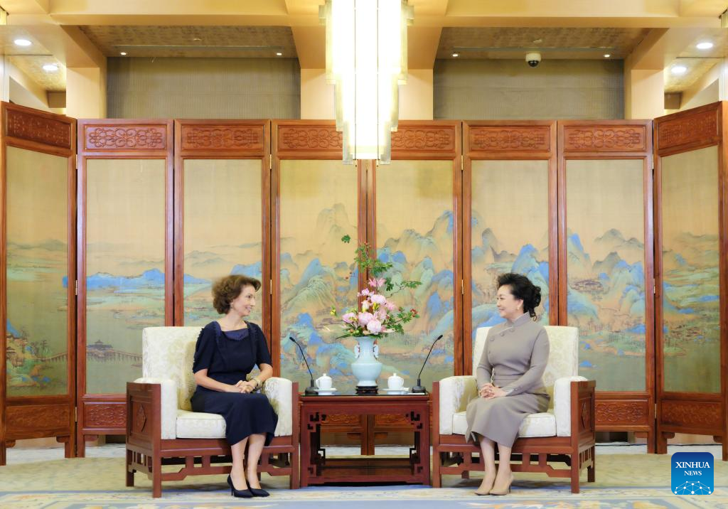 BEIJING, Sept. 19 (Xinhua) -- Peng Liyuan, wife of Chinese President Xi Jinping, and Audrey Azoulay, director-general of the United Nations Educational, Scientific and Cultural Organization (UNESCO), attended the 2025 UNESCO Prize for Girls' and Women's Education award ceremony and the 10th anniversary celebration of the prize in Beijing on Friday.