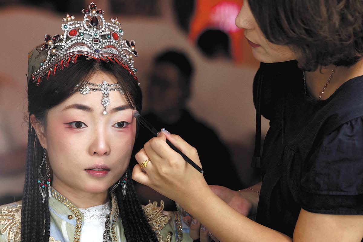 A visitor gets her makeup done at a travel photography shop at the Grand Bazaar, on Sept 8. ZHU XINGXIN/CHINA DAILY