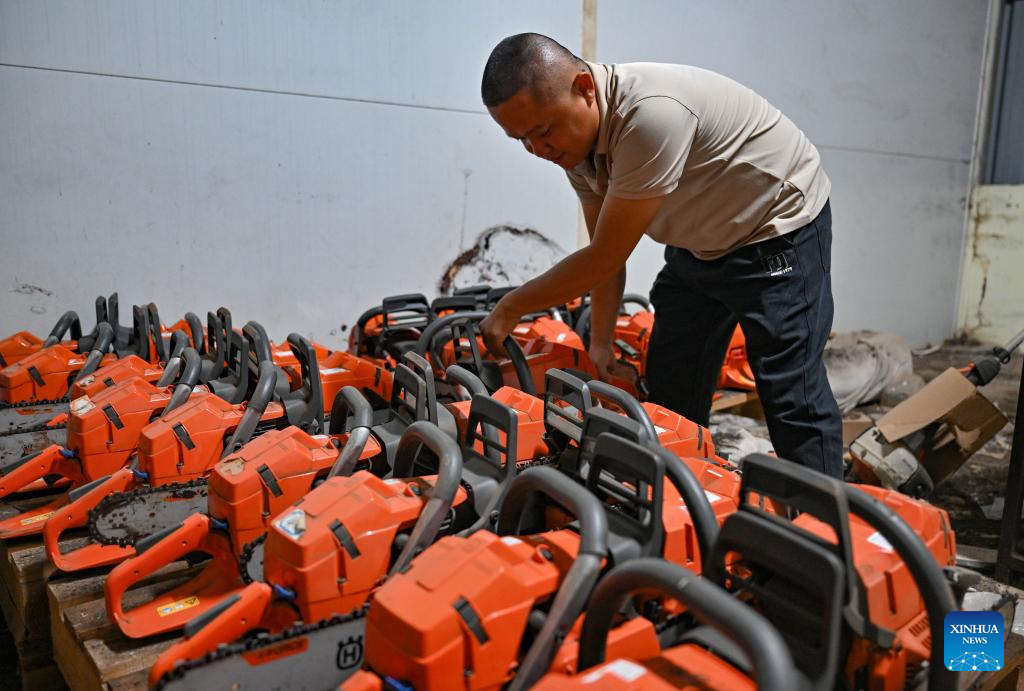 A staff member prepares emergency tools in Haikou, south China's Hainan Province, Sept. 23, 2025. Typhoon Ragasa is expected to impact the island province of Hainan, with the provincial capital Haikou to suspend classes, ferry services, park operations, work and business activities starting later on Tuesday or Wednesday. All train services to and from the island will be canceled on Wednesday. (Xinhua/Guo Cheng)