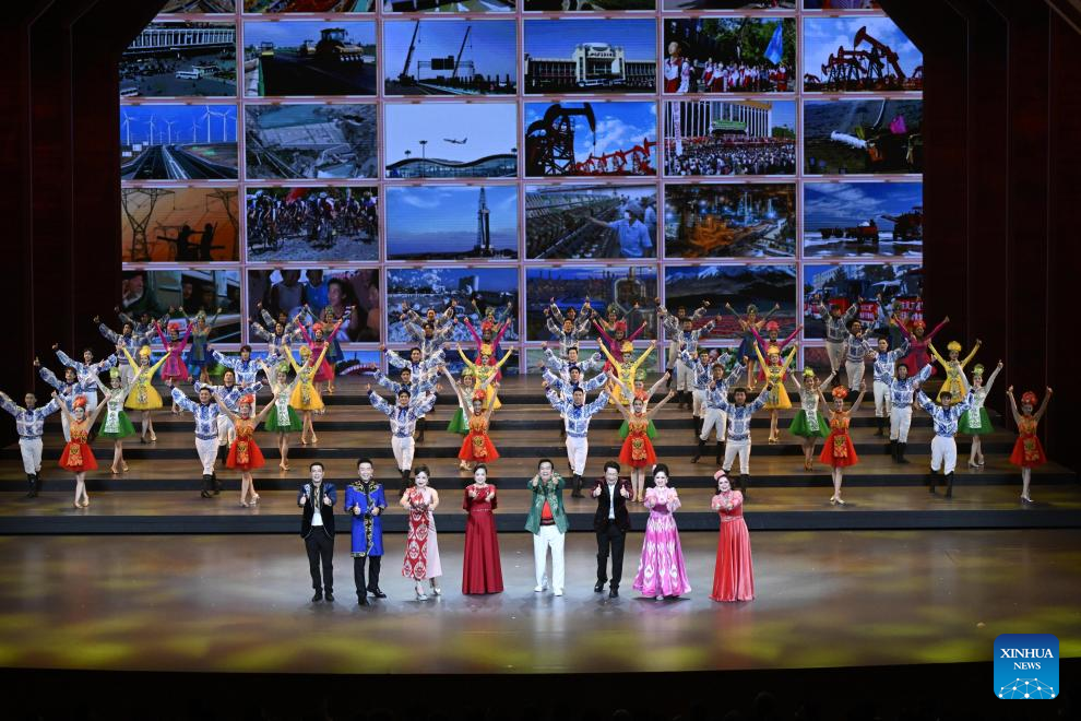 A gala entitled "Beautiful Xinjiang" is held to mark the 70th founding anniversary of Xinjiang Uygur Autonomous Region in Urumqi, the regional capital, Sept. 24, 2025. (Xinhua/Ding Lin)