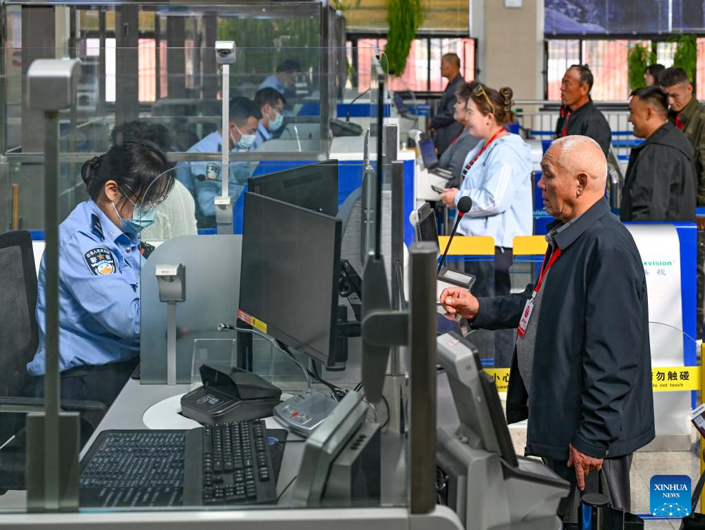 An immigration officer handles entry formality for a passenger from Kazakhstan at Bakti port in Tacheng, northwest China's Xinjiang Uygur Autonomous Region, Sept. 17, 2025. Xinjiang is seeing increased vitality across the board as the region accelerates its efforts to the construction of the New International Land-Sea Trade Corridor, a key logistics network connecting China's western regions to global markets. (Xinhua/Wang Fei)