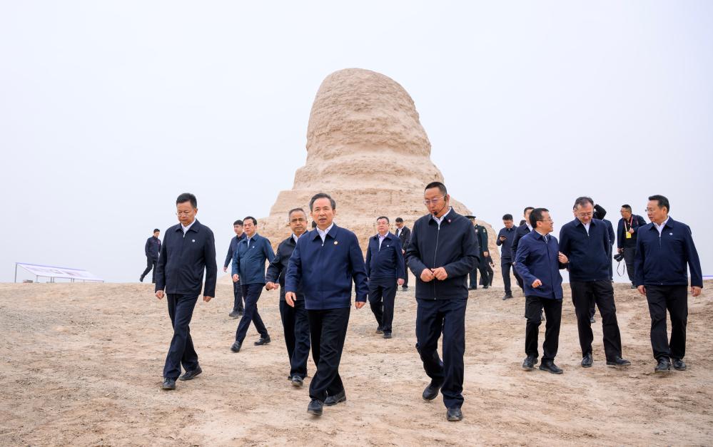 Wang Dongfeng and members of a central delegation visit a relics site in the Kazak Autonomous Prefecture of Ili in northwest China's Xinjiang Uygur Autonomous Region, Sept. 26, 2025. Entrusted by Xi Jinping, general secretary of the Communist Party of China Central Committee, members of a central delegation on Friday continued to visit local officials and residents in multiple areas of northwest China's Xinjiang Uygur Autonomous Region and the Xinjiang Production and Construction Corps (XPCC). (Xinhua/Chen Bin)