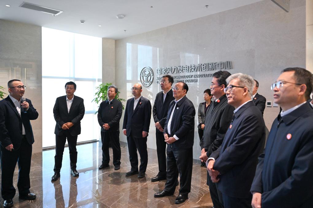 Shohrat Zakir and members of a central delegation visit a national technology innovation center for wind power in northwest China's Xinjiang Uygur Autonomous Region, Sept. 26, 2025. Entrusted by Xi Jinping, general secretary of the Communist Party of China Central Committee, members of a central delegation on Friday continued to visit local officials and residents in multiple areas of northwest China's Xinjiang Uygur Autonomous Region and the Xinjiang Production and Construction Corps (XPCC). (Xinhua/Xin Yuewei)