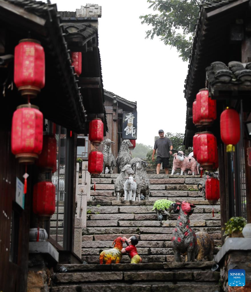 People visit an ancient village at Baohua Mountain National Park in Jurong, east China's Jiangsu Province, Sept. 27, 2025. Baohua Mountain National Park has attracted a lot of tourists recently for its beautiful autumn scenery as well as its cultural and historical view. (Xinhua/Ji Chunpeng)