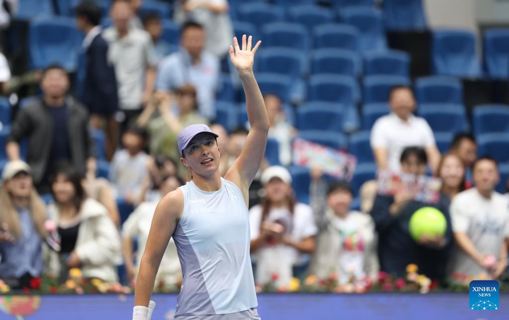 BEIJING, Sept. 27 (Xinhua) -- World No.2 Iga Swiatek of Poland kicked off her China Open campaign in style on Saturday, defeating home player Yuan Yue 6-0, 6-3 in the women's singles second round to extend her unbeaten record at the National Tennis Center.