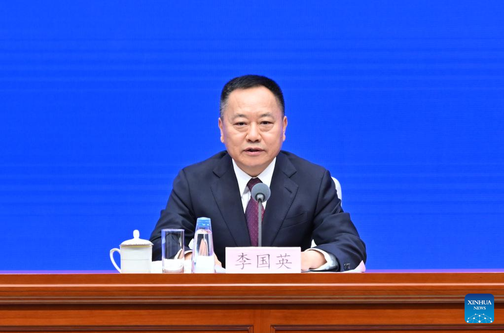 Chinese Minister of Water Resources Li Guoying attends a press conference held by the State Council Information Office (SCIO) on achievements in high-quality development of the water sector during the 14th Five-Year Plan period (2021-2025) in Beijing, capital of China, Sept. 29, 2025. (Xinhua/Li Xin)